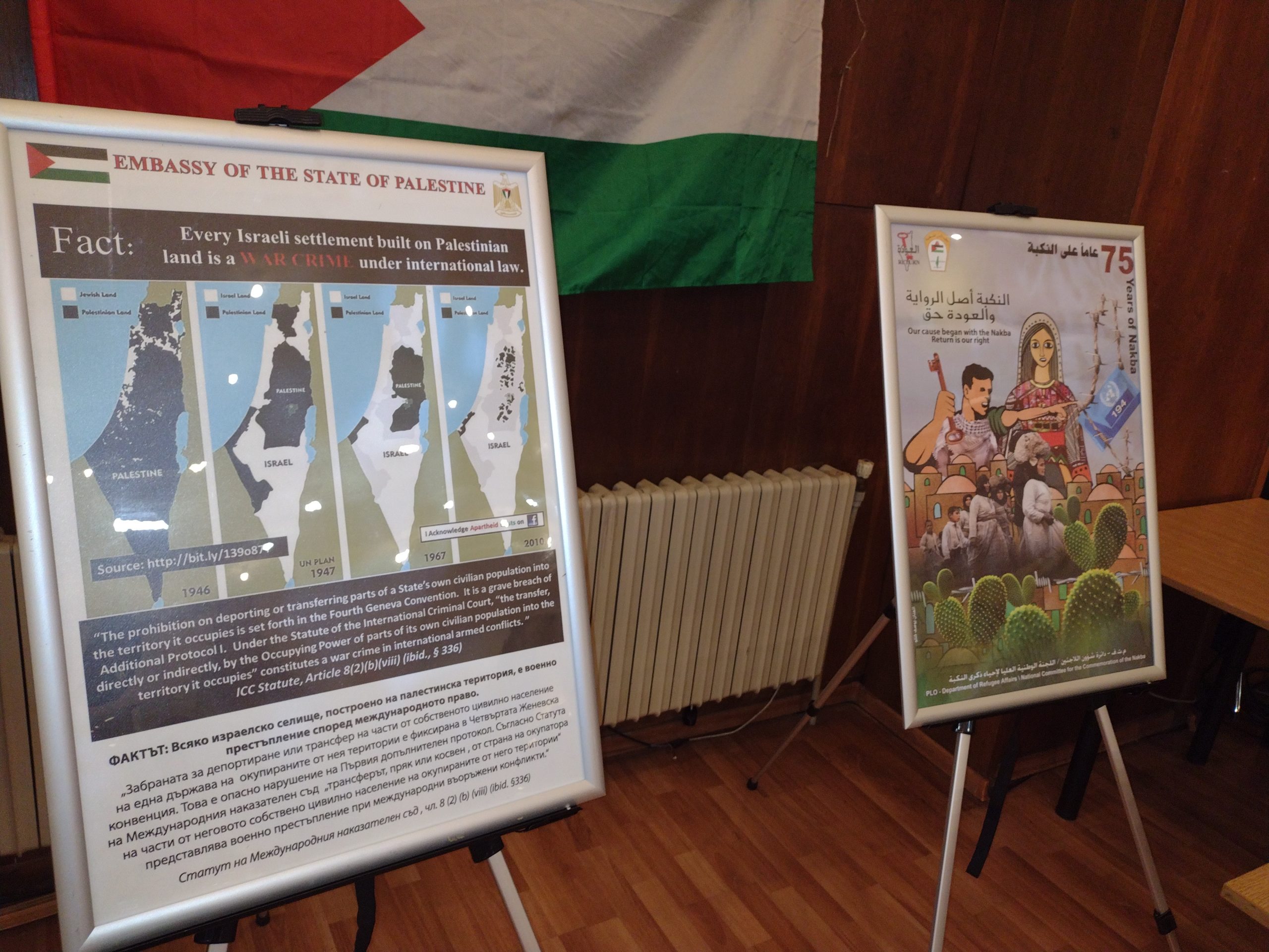 Такъв бе и акцентът на софийската вечер в Клуба на архитекта под надслова „Истории от Палестина“. Разказите на участниците вървяха на фона на подредена в залата фотоизложба с фотоси, отразяващи различни етапи от борбата на палестинците да отстоят правото си на родина.