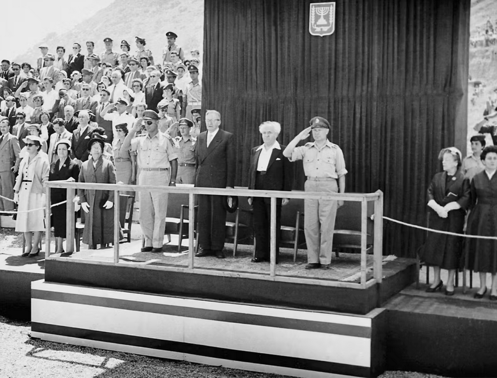 Към средата на 50-те години израелските лидери се чувстват окуражени от международното признание, оръжейните доставки и бързия икономически растеж. Толкова са окуражени, че през 1956 г. Израел в партньорство с Великобритания и Франция нахлува в Египет и го окупира. При подготовката на агресивната война, „върховното международно престъпление“, както се определя от Нюрнбергския процес, Бен-Гурион представя на съвоюващите страни своята следвоенно(престъпна) визия, която включва пълно преначертаване на картата.
