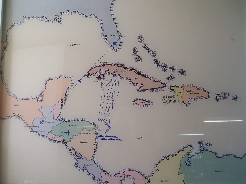Трябва да се отбележи, че междувременно в Белия дом влиза нов американски президент – Джон Кенеди. Той е осведомен за задвижения от предшественика му Айзенхауер план за наемническо нахлуване в Куба с цел сваляне на властта там. Кенеди оставя плана в действие, макар да е скептичен към него. Не може да го отмени, защото в предизборните си обещания се е зарекъл да продължи суровата американска линия срещу Хавана.
