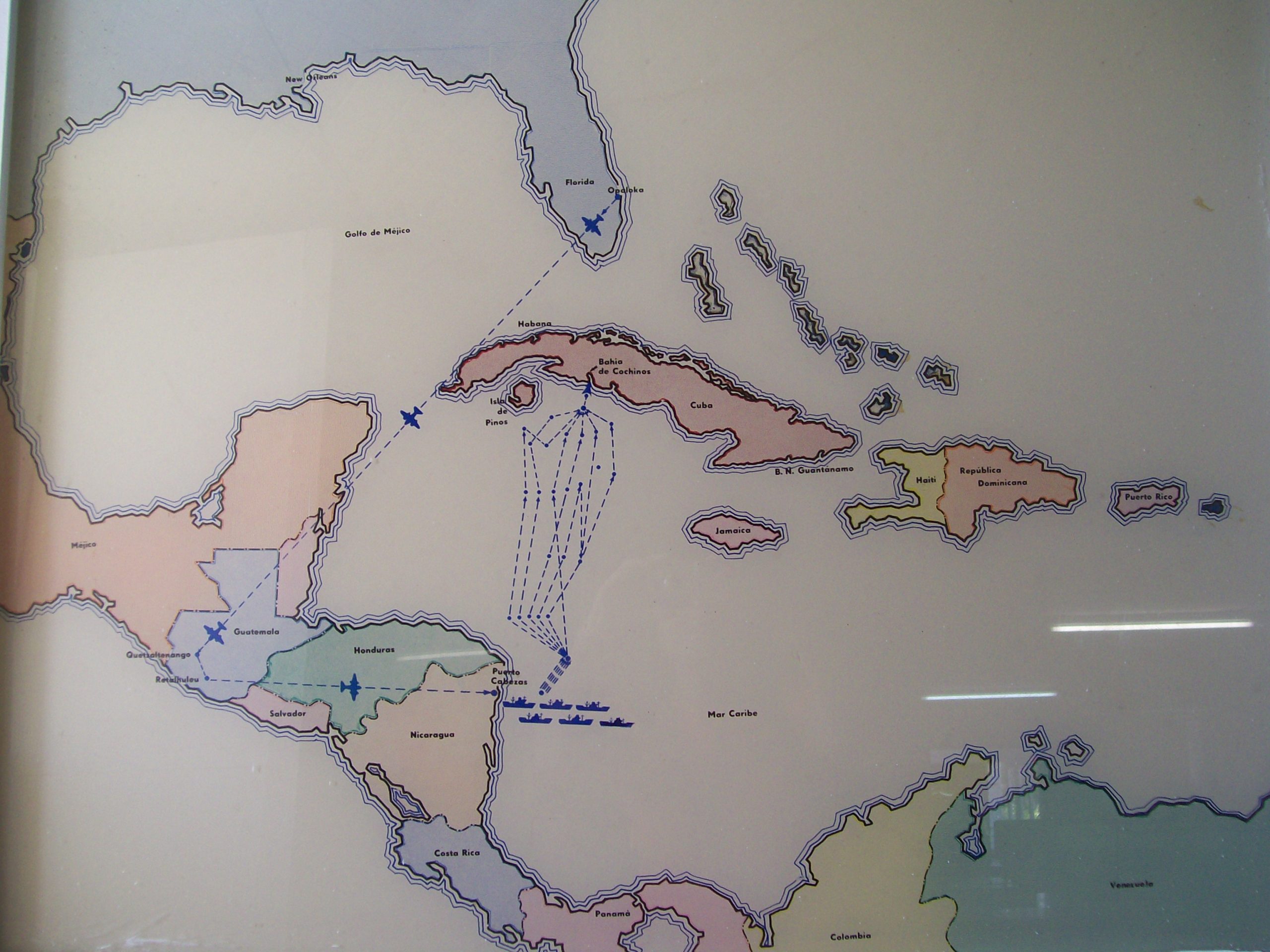 Последвалите действия на кубинското разузнаване изясняват и подробностите. Плавателните съдове ще тръгнат от карибското пристанище Пуерто Кабесас в Никарагуа, като управляващият там тогава диктатор Сомоса изцяло съдейства за операцията. Предвижда се също малко преди дебаркирането самолети, излетели от Гватемала, да бомбардират кубински военни летища, за да унищожат предварително цялата кубинска бойна авиация. Куба взима мерки. Оставя видими на летищата си само повредени машини или макети. Другите си самолети успява да укрие и да спаси.