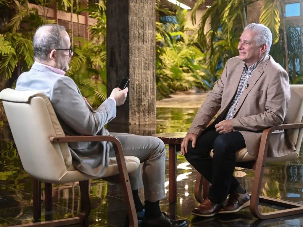 Диас-Канел отоваря: „Преговори няма. Едни преговори първо трябва да се изградят. Първо трябва да се разговаря, първо трябва да установим по какви теми можем да работим съвместно. А след това трябва да се покаже готовност това да се постигне по конструктивен начин. Ако една от страните не улеснява такъв тип разговор, ако иска да се налага, тогава тя чупи разговора, чупи преговорите“.